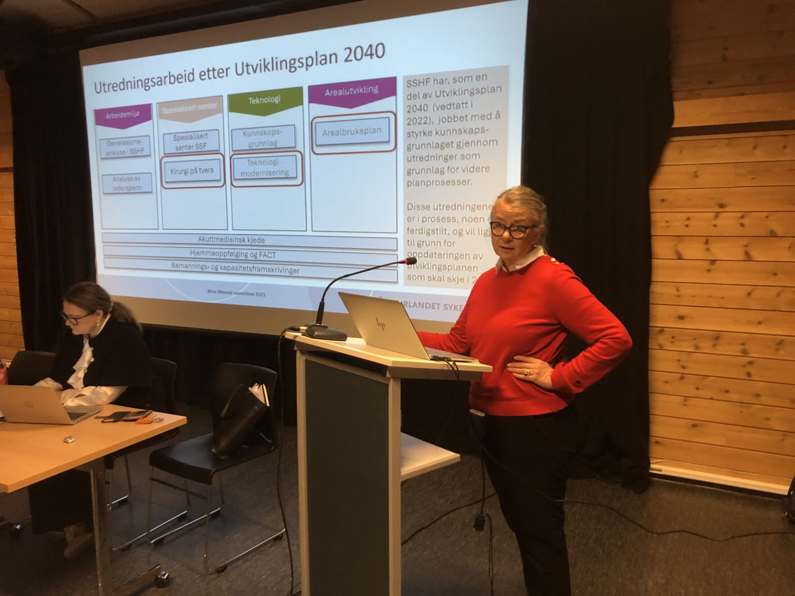Styremøte: Lenke til sakskart for styremøte. Møtet starta med ei orientering om prosesser ved Sørlandet sjukehus v/administrerende direktør Nina Mevold: